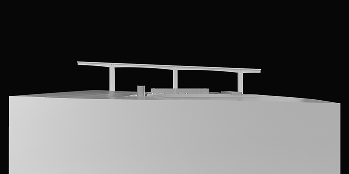Le bâtiment du CIS est dimensionné et réglé sur une matrice en béton : les deux travées nord et sud sont couvertes par une nappe de planchers préfabriqués nervurés en double T d’une portée de 22m reprise par des portiques poteau-poutre orientés est-ouest. Ces planchers à plus de 5m de haut supportent la dalle de toiture. Ces travées symétriques dont l’une, au sud, correspond à la remise principale, encadrent une travée centrale en voiles et planchers alvéolaires béton qui comporte deux niveaux. L’étage est évidé sur toute la largeur du bâtiment par un patio linéaire qui assure l’éclairement des chambres des pompiers. Dans la structure de cette matrice béton viennent se greffer les différents ouvrages légers d’enveloppe, de cloisonnement, d’équipements techniques et d’agencement, par remplissage successif dans lequel chaque composant de la construction reste visible : façades bardées, doublages et cloisons en plaques de gypse, réseaux laissés apparents et étagés en strates. |